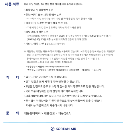 2025 대한항공 하반기 객실승무원 채용